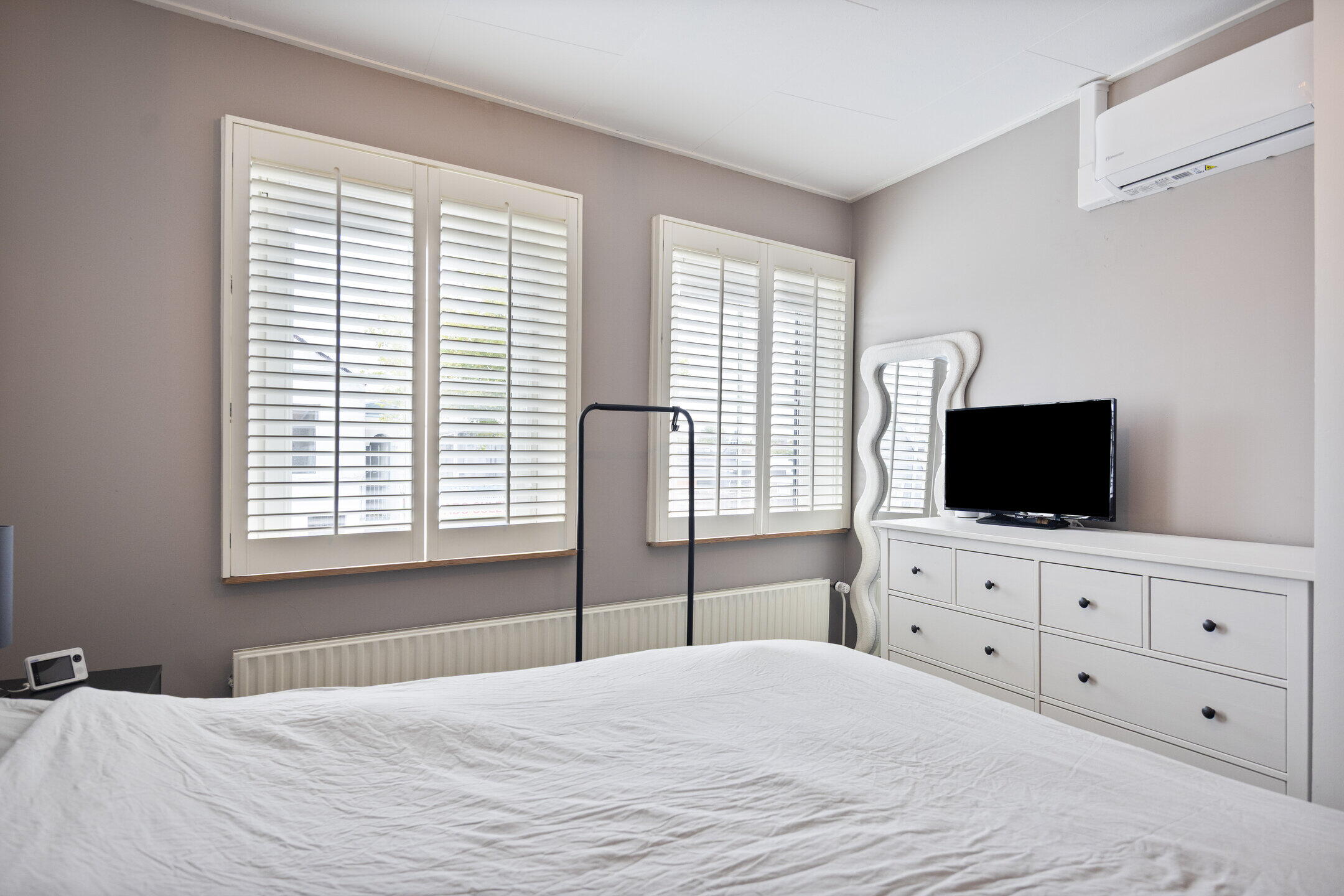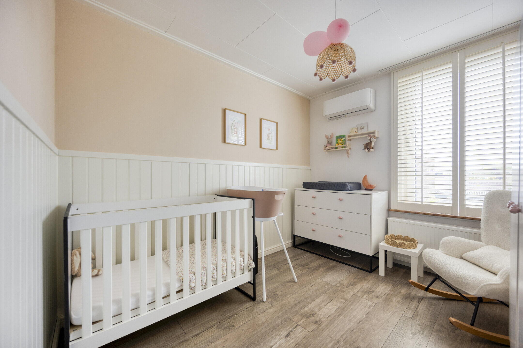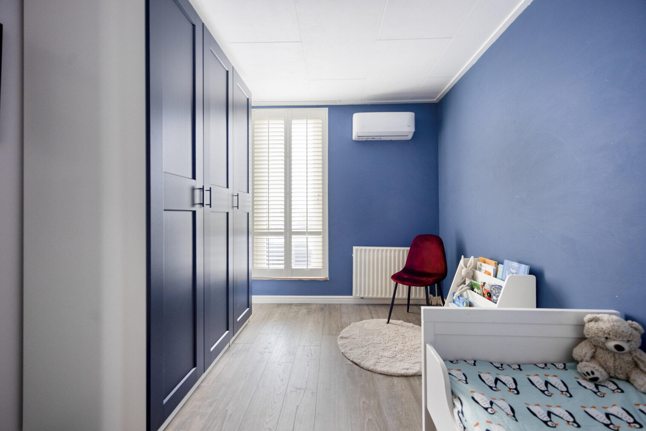 Op de eerste verdieping bevinden zich drie slaapkamers. De master bedroom ligt aan de voorzijde van de woning en beschikt over twee vaste kasten en ruimte voor een tweepersoonsbed én extra kast of tv-meubel. De twee overige slaapkamers liggen aan de achterzijde, hebben een goed formaat en zijn perfect als kinder-, werk- of logeerkamer. Extra fijn: alle slaapkamers zijn voorzien van airco! De badkamer is een oase van rust en luxe. Met lichte wandtegels, een zandkleurige accentmuur in de douche, dubbele waskommen op een houtkleurig meubel en zwarte details zoals de radiator, is dit een plek waar je graag je dag begint én eindigt. De kranen komen uit de muur en voegen een moderne, stijlvolle touch toe.