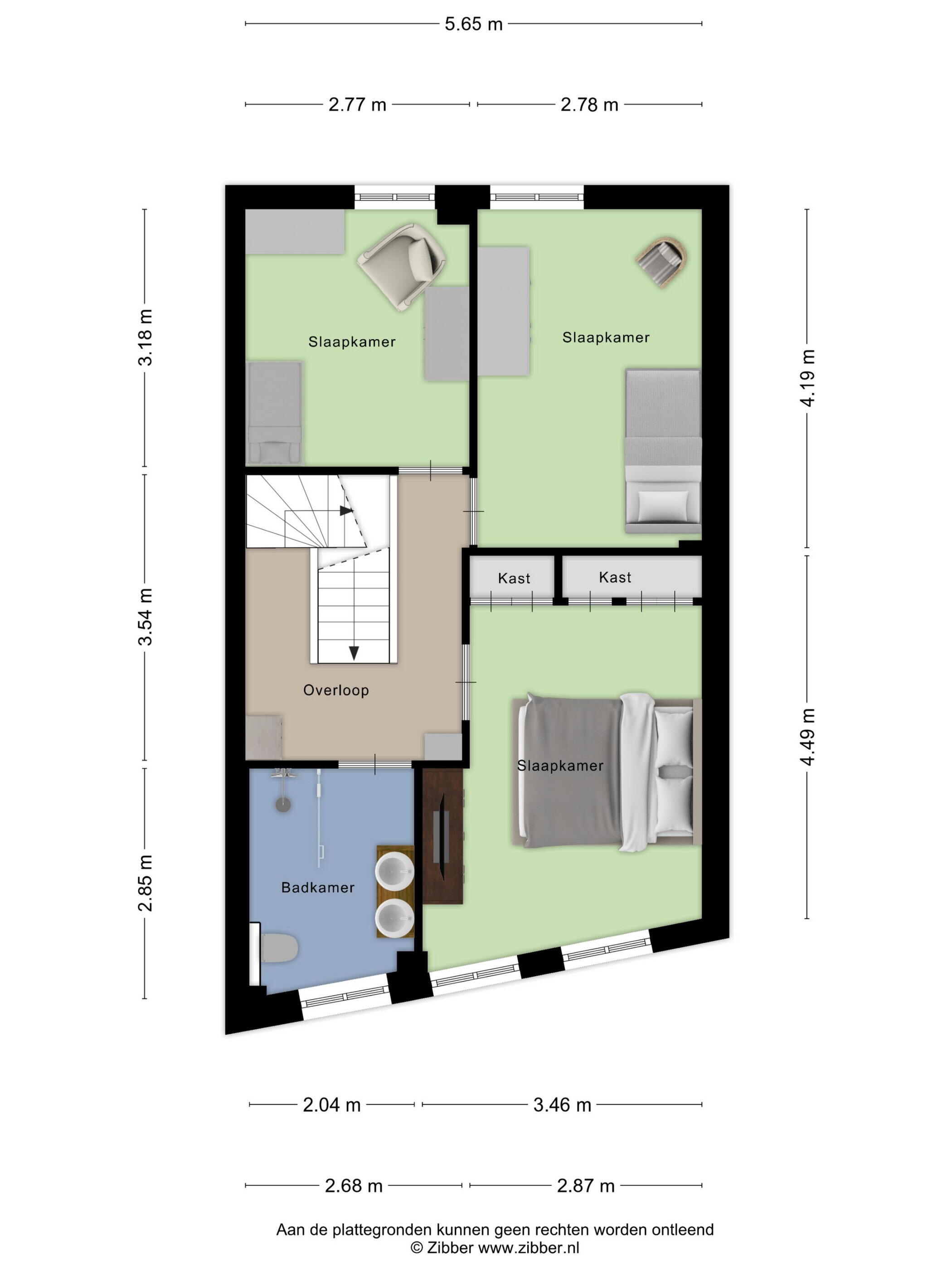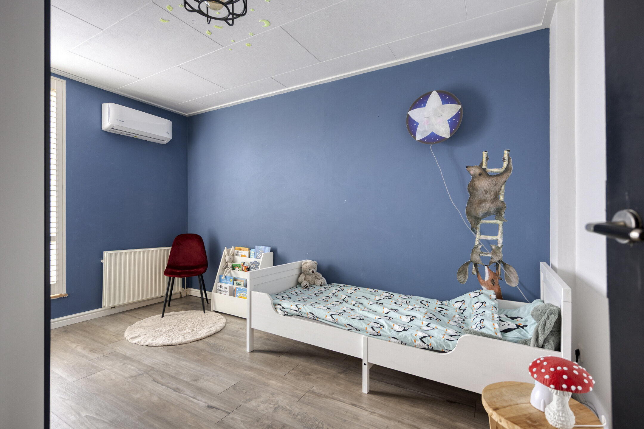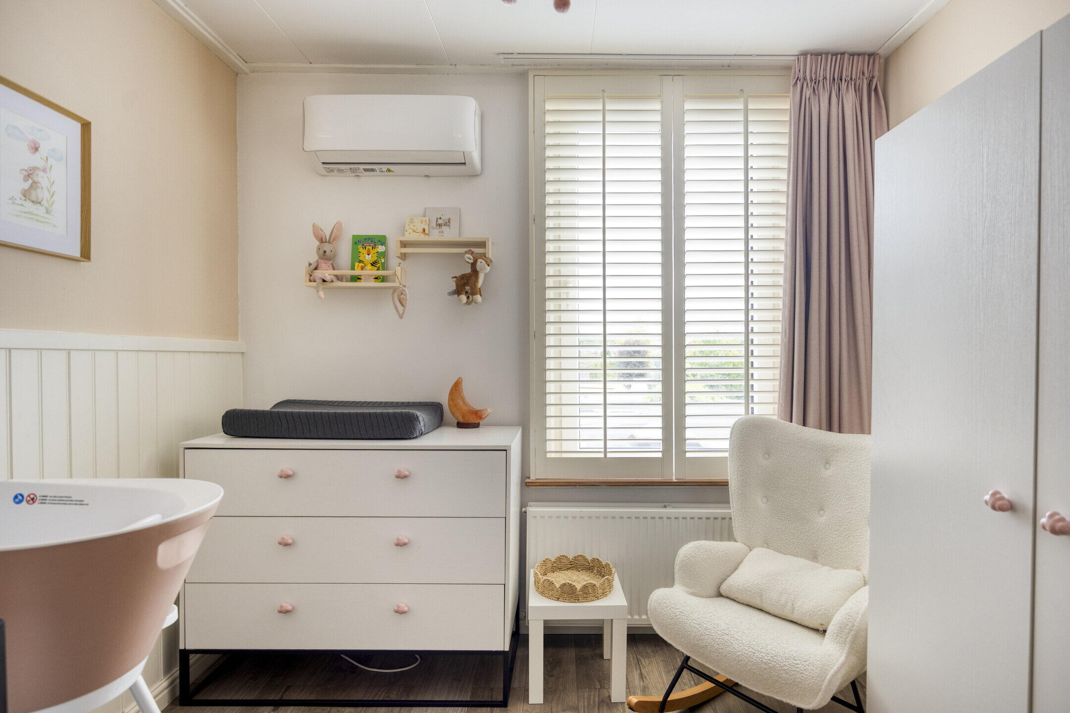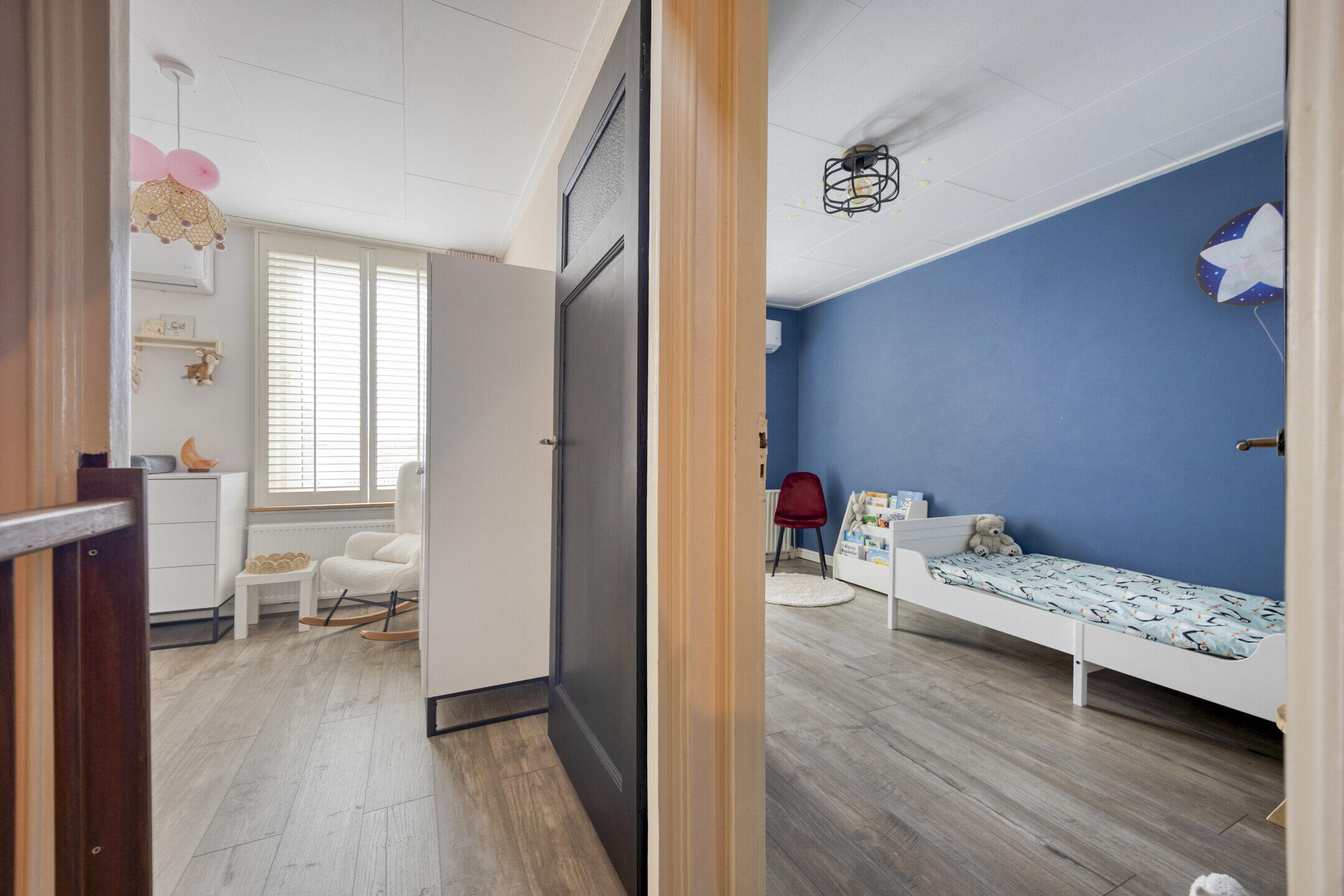Op de eerste verdieping bevinden zich drie slaapkamers. De master bedroom ligt aan de voorzijde van de woning en beschikt over twee vaste kasten en ruimte voor een tweepersoonsbed én extra kast of tv-meubel. De twee overige slaapkamers liggen aan de achterzijde, hebben een goed formaat en zijn perfect als kinder-, werk- of logeerkamer. Extra fijn: alle slaapkamers zijn voorzien van airco! De badkamer is een oase van rust en luxe. Met lichte wandtegels, een zandkleurige accentmuur in de douche, dubbele waskommen op een houtkleurig meubel en zwarte details zoals de radiator, is dit een plek waar je graag je dag begint én eindigt. De kranen komen uit de muur en voegen een moderne, stijlvolle touch toe.