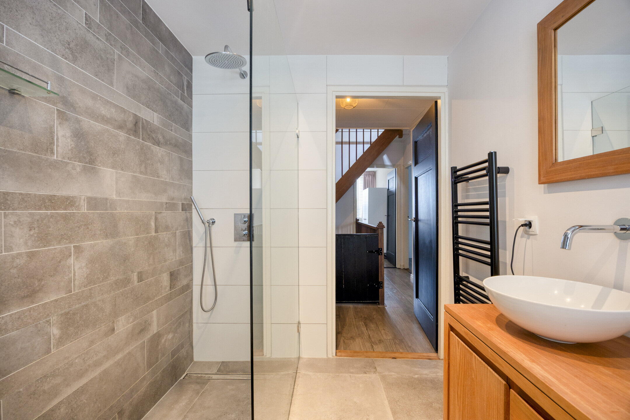 - Douche, dubbele wastafel, wastafelmeubel, inloopdouche